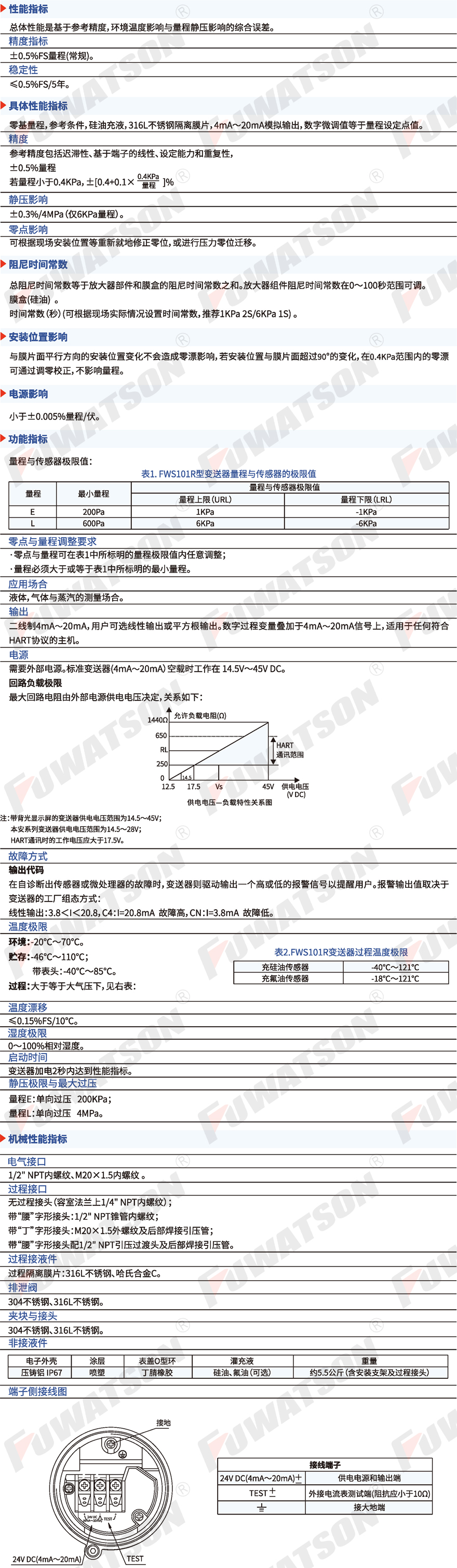FWS101R系列測量精(jing)度0.5%FS,最高0.2%FS;采用雙過(guò)載保護技術;過載(zǎi)能力強✨,單🔱向壓力(lì)可達4MPa;可270º旋轉的就(jiù)地顯示屏幕;方便(biàn)的就地零點、滿點(diǎn)設置調校功能;擁(yōng)有标準HART總線通訊(xun)模式💰與NB-...