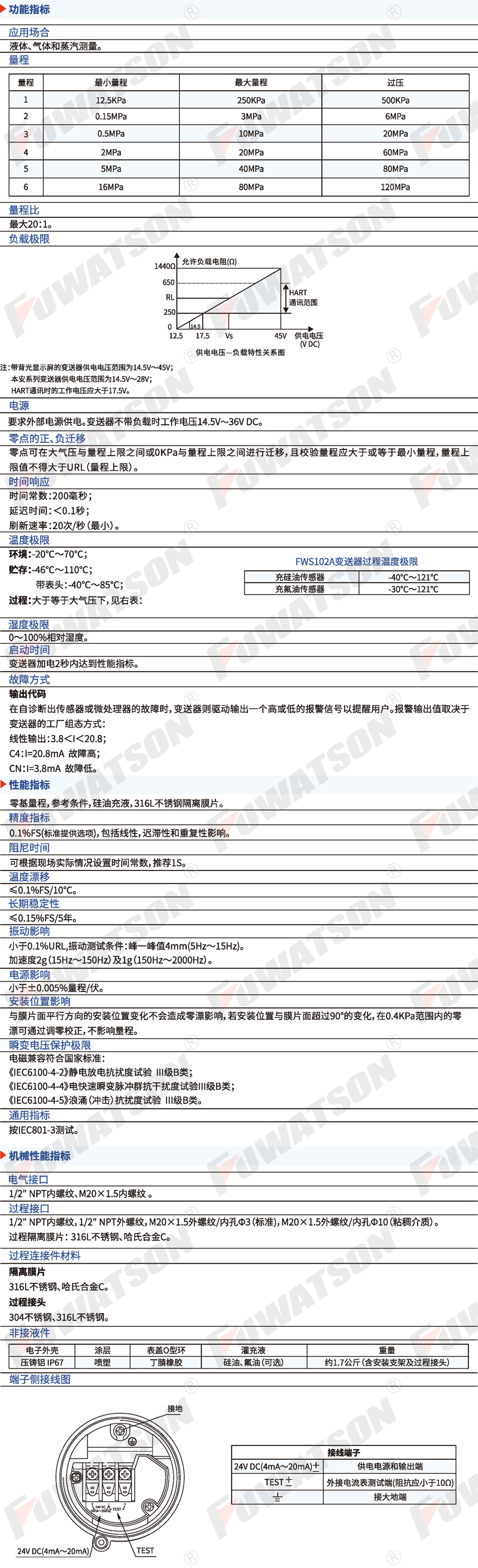 FWS102G系列測量精度(dù)0.1%FS,最高0.075%FS;量程比最(zuì)大可達20:1;完善的(de)自診斷及遠程(chéng)通訊功能;可270º旋(xuan)轉的就地顯示(shi)屏幕;方便的就(jiù)地零點、滿點設(she)置調校功能;擁(yong)有标準HART總線通(tong)訊模式與NB-I...